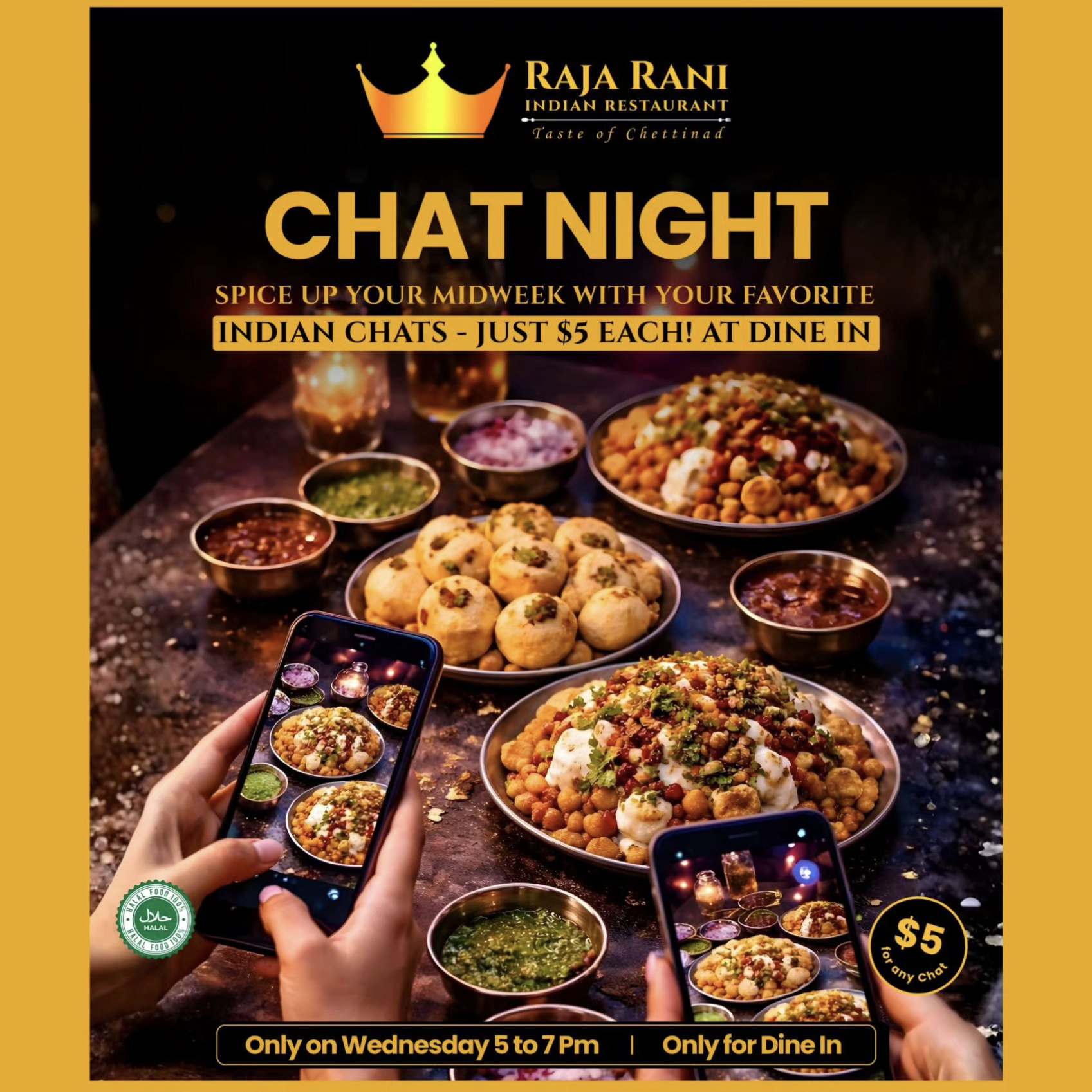 Indian Chats—Just $5 Each on Chat Night!